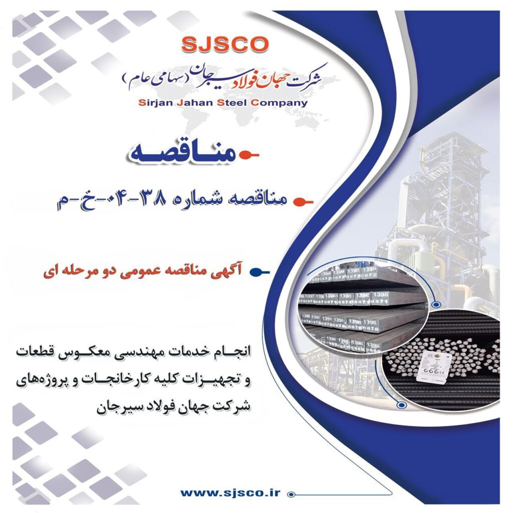 شرکت جهان فولاد سیرجان در نظر دارد نسبت به انجام خدمات مهندسی معکوس قطعات و تجهیزات کلیه کارخانجات و پروژه ها از طریق برگزاری مناقصه عمومی دو مرحله ای اقدام نماید؛ لذا از تمامی شرکت های معتبر که دارای سابقه کار مشابه، توانایی مناسب، سوابق و تجارب مورد قبول می باشند، دعوت به عمل می آید اسناد مناقصه را از طریق مراجعه به آدرس اینترنتی WWW.SJSCO.IR دریافت نمایند.