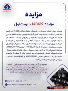 شرکت جهان فولاد سیرجان در نظر دارد مقدار حداکثر ۱۰۰۰ تن میلگرد طول کوتاه مشکی (نرمال) مازاد بر نیاز خود را طبق آنالیز شیمیایی و