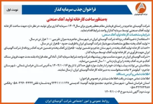 چاپ و انتشار نوبت اول آگهی فراخوان شرکت آلومینای ایران با موضوع:فراخوان جذب سرمایه گذار به منظور ساخت کارخانه تولید آهک صنعتی