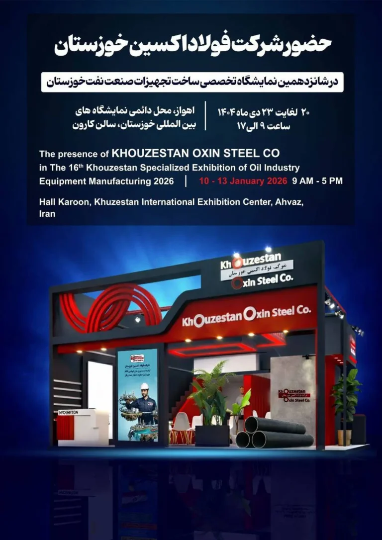 حضور شرکت فولاد اکسین خوزستان در شانزدهمین نمایشگاه تخصصی ساخت تجهیزات صنعت نفت خوزستان زمان: ۲۰ الی ۲۳ دی ماه ۱۴۰۴ مکان :