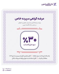 چرخ اقتصاد ؛به گزارش روابطعمومی بانک اقتصادنوین، این بانک براساس مجوز بانک مرکزی ج.ا.ا گواهی سپرده خاص یکساله با نرخ سود علیالحساب ۳۰ درصد سالانه